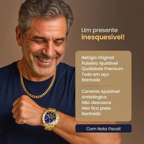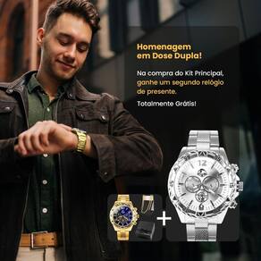 Condição especial: Na aquisição deste kit, você recebe um segundo relógio da mesma coleção. Dessa forma, você pode também usufruir do estilo junto com seu pai. Este produto é indicado para ocasiões casuais do cotidiano ou ambiente profissional.