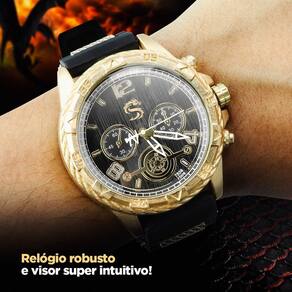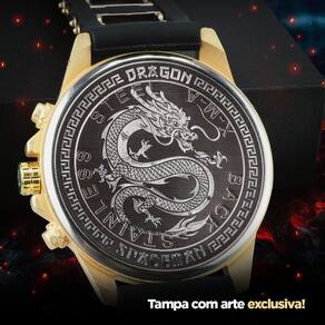 Kit Masculino Premium Orizom Spaceman "Dragon" - Relógio Dourado, Cordão, Pingente e Pulseira- Relógio "Dragon" Orizom Spaceman: Design exclusivo com um dragão gravado a laser no fundo preto. Pulseira ajustável em silicone para qualquer tamanho de pulso. Tampa blindada para maior durabilidade. Arte única feita com precisão a laser. Ultra premium e personalizado, ideal para presentear.- Cordão Grosso Banhado de 60cm: Elegante cordão banhado, complementando o estilo do relógio. Comprimento versátil, adequado para diversas ocasiões.- Pingente Grande de Cruz Banhado (4cm): Pingente imponente com 4cm de comprimento. Formato de cruz para um toque espiritual e estiloso. Banhado a ouro para durabilidade e brilho.- Pulseira Grossa Coordenada: Pulseira robusta com os mesmos materiais e estilo do cordão. Combinação perfeita para um visual harmonioso. Ajustável para se adequar ao pulso.Descrição Geral: O Kit Masculino Orizom Spaceman "Dragon" é a combinação perfeita de elegância, exclusividade e personalização. O relógio, com seu design único de dragão gravado a laser, é ultra premium e resistente com sua tampa blindada. O cordão, pingente e pulseira coordenados acrescentam um toque de sofisticação, tornando este conjunto ideal para presentear alguém especial. Surpreenda quem você ama com este conjunto exclusivo e cheio de estilo! Compre já e adicione um toque de sofisticação ao seu visual!