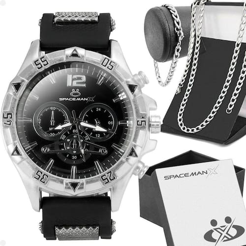- Relógio Analógico Masculino Orizom Spaceman X: Elegância e sofisticação em um só acessório. - Cordão em Aço Inoxidável Grumet: O toque perfeito para complementar qualquer look. - Pulseira em Aço Inoxidável: Versátil e estilosa, ideal para o homem moderno. - Caixa Premium Orizom Spaceman X: Apresentação elegante e sofisticada para o presente.