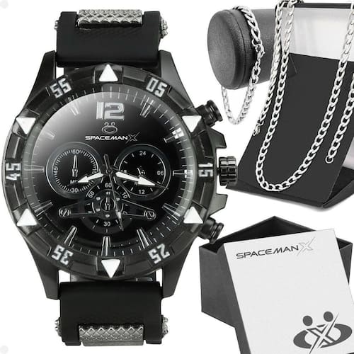 - 1 Relógio Analógico Masculino Orizom Spaceman X: Apresenta um maquinário em aço inoxidável com pintura eletrostática preta black piano , combinado com um mostrador preto elegante e fácil de ler. A pulseira em silicone ajustável garante um ajuste confortável em qualquer pulso. Este relógio é mais do que um acessório, é uma declaração de estilo e sofisticação para o homem moderno.
