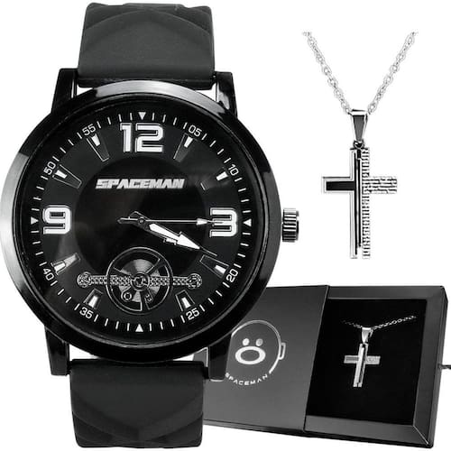 Relogio masculino aço inox preto + caixa + cordao prata relogio cordao ajustavel social casual Kit Exclusivo: Relógio Orizom Spaceman + Colar Cruz com Oração Pai Nosso Destaque-se com este conjunto marcante que une estilo e expressão O kit exclusivo inclui um relógio analógico preto da renomada marca Orizom Spaceman, com fundo preto e pulseira de silicone, além de um elegante colar prata de aço inoxidável, com um pingente de cruz acompanhado da poderosa oração Pai Nosso. Características do Relógio: - Design Moderno: Destaque-se com o design moderno e elegante deste relógio preto da Orizom Spaceman. - Facilidade de Leitura: Com um mostrador de fácil visualização, este relógio garante uma leitura rápida e precisa das horas, oferecendo praticidade no seu dia a dia. - Pulseira em Silicone: A pulseira em silicone adiciona um toque de conforto e estilo ao seu visual diário. - Cuidado com a Água: Importante observar que não é à prova d'água. Recomenda-se evitar contato excessivo com água para preservar a qualidade ao longo do tempo. - Detalhes Exclusivos: Os poucos detalhes podem variar de acordo com a disponibilidade em , garantindo a singularidade de cada peça. Características do Colar: - Elegância Prata: O colar prata de aço inoxidável, com seu pingente de cruz, complementa o conjunto de forma harmoniosa, adicionando um toque de elegância ao seu visual. - Pingente com Oração Pai Nosso: O pingente de cruz traz consigo a poderosa oração Pai Nosso, adicionando um toque significativo e espiritual à peça. - Versatilidade de Uso: O colar é uma escolha versátil, adequado para diversas ocasiões e estilos, tornando-se um acessório atemporal. Marca: Não Informado Ean: 7897186178912
