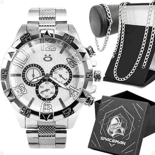 - Relógio Masculino Orizom Spaceman - Tipo: Analógico ponteiro - Modelo: Spaceman - Qualidade: Premium - Cor: Prata - Mostrador: Prata opção na cor branca também disponível - Material: Aço inoxidável - Resistência à água: Prova d'água - Nota: Detalhes internos do relógio podem variar de acordo com montagem no ato de sua compra