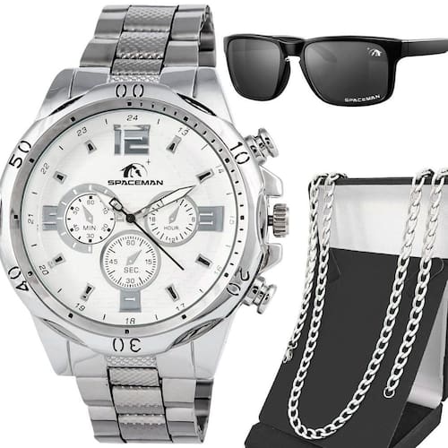 Relógio Masculino Aço Inoxidável + Cordão + Óculos Sol Proteção UV - Orizom Spaceman Kit Masculino Orizom Spaceman - Relógio, Óculos de Sol e Cordão Grumet