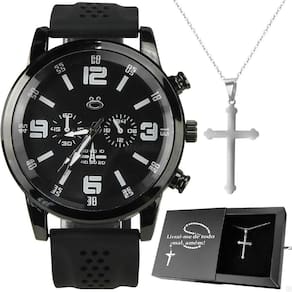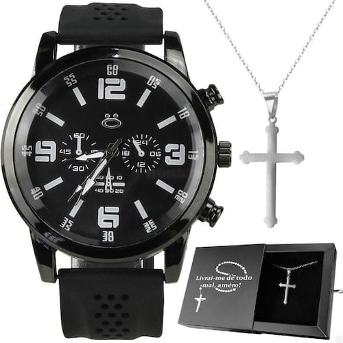 Relogio Masculino Aço Preto Inoxidável Presente Prata Religioso Oração Pai Nosso Ajustavel Pesado Kit de Acessórios Masculino Orizom - Linha Jesus na Cruz Seja o centro das atenções com este sofisticado e elegante kit de acessórios masculinos Orizom, que combina estilo, qualidade e um toque especial de espiritualidade.