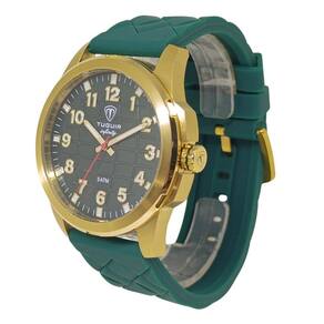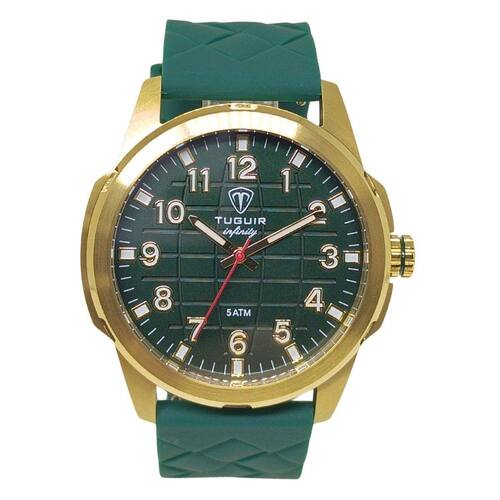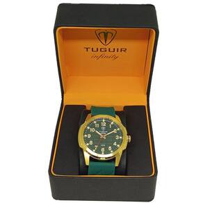 Relógio Masculino de Aço Tuguir ógico 23-2236 Dourado e Verde Relógio Masculino de Aço Tuguir ógico 23-2236 Dourado e Verde Marca: Tuguir Categoria: ógico ógico: Sim 1 Horário Ponteiros Fluorescentes: Sim Digital: Não Luz: Selecione Resistente à Água: 5 ATM Pode ser para nadar no raso, por pouco tempo submerso - Respingos: Sim - Chuva: Sim - Lavar Carro: Sim - Lavar Louça: Sim - Natação: Sim - Mergulho: Não Característica do Vidro: Cristal Mineral Tipo de Fecho: Fivela Cor da Caixa: Dourado Material da Caixa: Aço Formato da Caixa: Redondo Diâmetro da Caixa: 45,00 mm Espessura da Caixa: 11,00 mm Cor da Pulseira: Verde Material da Pulseira: Silicone Largura da Pulseira: 23,50 mm Comprimento Máximo da Pulseira: 250,00 mm Alimentação: Bateria Interna Peso Líquido: 0,090 Kg Modelo: 23-2236 Cor Predominante: Dourado Cor Diferencial: Verde : 12 Meses Conteúdo da Embalagem: 01 Relógio 01 Embalagem 01 Termo de Marca: Não Informado