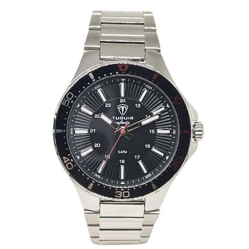 Relógio Masculino de Aço Tuguir ógico 23-2238 Prata e Preto e Vermelho Relógio Masculino de Aço Tuguir ógico 23-2238 Prata e Preto e Vermelho Marca: Tuguir Categoria: ógico ógico: Sim 1 Horário Ponteiros Fluorescentes: Sim Digital: Não Luz: Selecione Resistente à Água: 5 ATM Pode ser para nadar no raso, por pouco tempo submerso - Respingos: Sim - Chuva: Sim - Lavar Carro: Sim - Lavar Louça: Sim - Natação: Sim - Mergulho: Não Característica do Vidro: Cristal Mineral Tipo de Fecho: Dobrável com Botão Cor da Caixa: Prata Material da Caixa: Aço Formato da Caixa: Redondo Diâmetro da Caixa: 46,00 mm Espessura da Caixa: 9,00 mm Cor da Pulseira: Prata Material da Pulseira: Aço Largura da Pulseira: 21,00 mm Comprimento Máximo da Pulseira: 220,00 mm Alimentação: Bateria Interna Peso Líquido: 0,120 Kg Modelo: 23-2238 Cor Predominante: Prata Cor Diferencial: Preto e Vermelho : 12 Meses Conteúdo da Embalagem: 01 Relógio 01 Embalagem 01 Termo de Marca: Não Informado