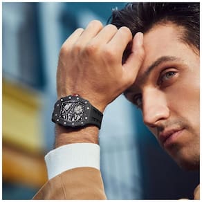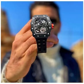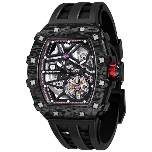 Especificação Marca TSAR BOMBA Número do modelo TBCF 8209 Número da peça TBCF 8209 Ano modelo 2022 Formato do Item Tonneau formato de barril Tipo de material da janela de discagem Safira Sintética material resistente a arranhões Tipo de exibição Analógico mostrador com ponteiros para indicar as horas, minutos e segundos Fecho Fivela fecho tradicional Material do caso Fibra de carbono material leve e resistente Diâmetro da caixa 5 centímetros Espessura da caixa 15,5 milímetros Material da banda Fibra de carbono material leve e resistente Tamanho da banda Enquanto padrão adequado para tamanhos de pulso padrão masculinos Largura da banda 22 milímetros Cor da faixa Preto Cor de discagem Preto mostrador na cor preta Características especiais O relógio possui marcadores luminosos, permitindo a visualização das horas em ambientes com pouca luz Movimento Automático Japonês movimento mecânico alimentado pela energia do movimento do usuário Profundidade resistente à água O relógio é resistente à água até 50 metros adequado para uso diário e resistente a respingos e chuva, mas não recomendado para natação ou mergulho