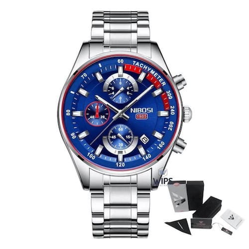 Relógio Masculino Analógico Cronógrafo Funcional Nibosi 2375 Cor: Prata Características: Marca: Nibosi Modelo: 2375 Categoria: Analógico Estilo: Fashion e Casual Movimento: Quartzo Cronógrafo: Ponteiros funcionais Calendário: Sim Diâmetro da caixa visor : 44 mm Espessura da caixa visor : 14 mm Tamanho da pulseira: 232 mm Largura da pulseira: 20 mm Tipo de fecho: Dobrável com trava Ponteiros luminosos: sim Material do Visor: Cristal hardlex Material da caixa: Aço inoxidável Material da pulseira: Aço inoxidável Peso liquido: 135g Alimentação: Bateria Resistente à Água: 3BAR/3ATM/30M - Respingos: Sim - Chuva: Sim - Lavar Louça: Sim - Natação: Não - Mergulho: Não : 03 Meses Conteúdo da Embalagem: - Relógio - Manual de instruções em inglês - Chave para regular a pulseira do relógio - Certificado internacional de originalidade - Flanela para limpar o relógio Marca: Não Informado