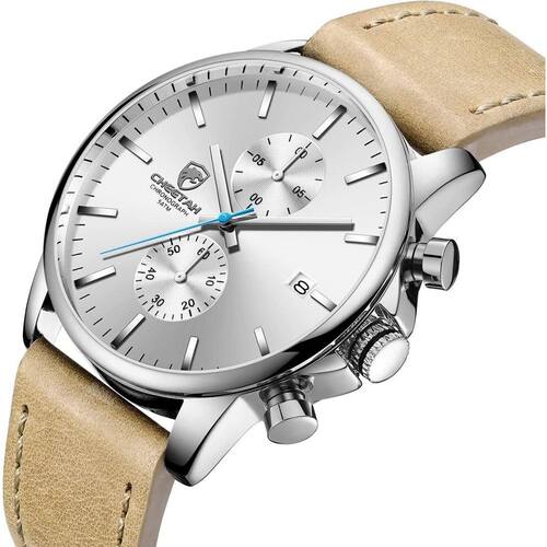 Características: Marca: Cheetah Modelo: 1604 Categoria: Analógico Estilo: Fashion e Casual Movimento: Quartzo Cronógrafo: Ponteiros funcionais Calendário: Sim Diâmetro da caixa visor : 42 mm Espessura da caixa visor : 12 mm Tamanho da pulseira: 255 mm incluindo o fecho Largura da pulseira: 22 mm Tipo de fecho: Fivela Simples Material do Visor: Vidro Mineral Material da caixa: Liga Material da pulseira: Couro Peso liquido: Cerca de 63g Alimentação: Bateria Resistente à Água: 5ATM Garantia: 03 Meses Conteúdo da Embalagem: - Relógio - Manual de instruções em inglês - Certificado internacional de originalidade