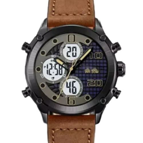 Movimento digital de quartzo para precisão e confiabilidade.
