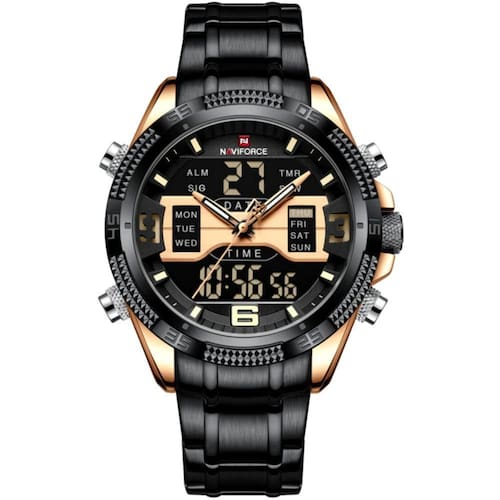 Relógio Masculino Analógico Em Aço Inoxidável Display Led Digital A Prova Dágua Preto Rose