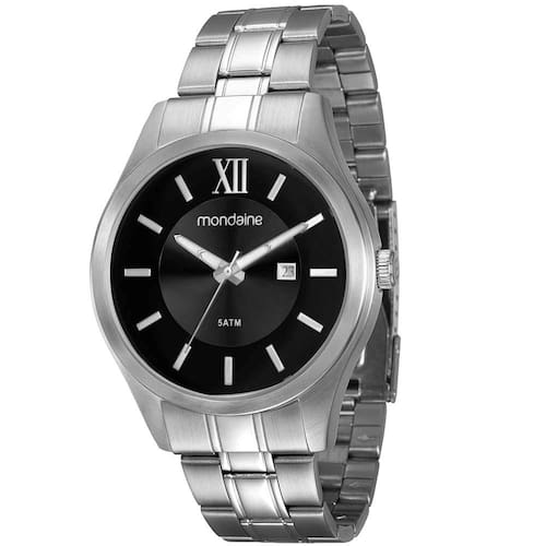 O Relógio Mondaine alia beleza e qualidade. Seu design simples proporciona uma visão clara de seu mostrador, que o torna extremamente funcional. Ele possui pulseira em aço e resistência à água em até 50 metros.