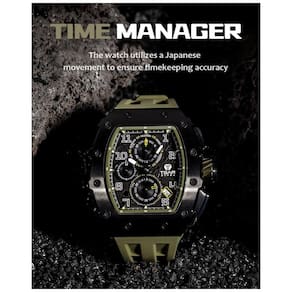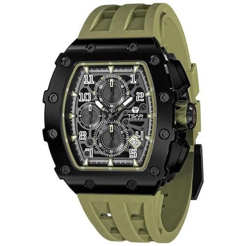 Marca, Vendedor ou Nome da Coleção TSAR BOMBA Número do Modelo TB 8204SGLZHX Número da Peça TB 8204SGLZHX Ano do Modelo 2022 Formato do Item Tonneau Tipo de Material da Janela de Discagem Cristal de Safira Tipo de Exibição Analógico Fecho Fivela Material do Caso Aço Inoxidável Diâmetro da Caixa 5 centímetros Espessura da Caixa 15,5 milímetros Material da Banda Silicone Tamanho da Banda Padrão Masculino Largura da Banda 24 milímetros Cor da Faixa Preto Cor do Mostrador Preto Calendário Data Características Especiais Cronógrafo, Luminoso, Resistente a Choques Movimento Quartzo Japonês Profundidade Resistente à Água 50 metros