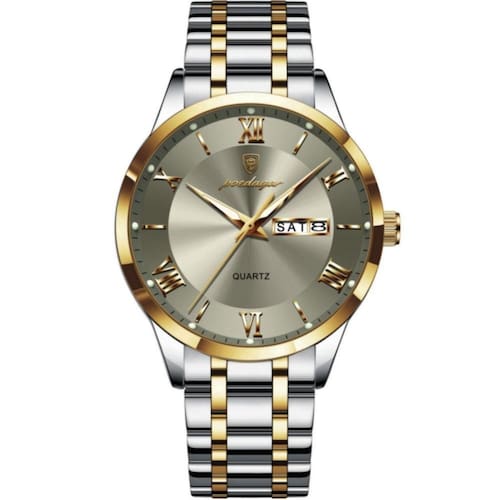 Descubra o relógio de pulso masculino que combina estilo e funcionalidade em um design incomparável. Este sofisticado acessório redefine o conceito de elegância com seu aço inoxidável de alta qualidade e mostrador com numerais romanos, projetado para aqueles que valorizam tanto o estilo quanto a precisão. Com um acabamento brilhante e resistente, este relógio é a escolha ideal para homens modernos que buscam afirmar sua presença em qualquer ocasião.
