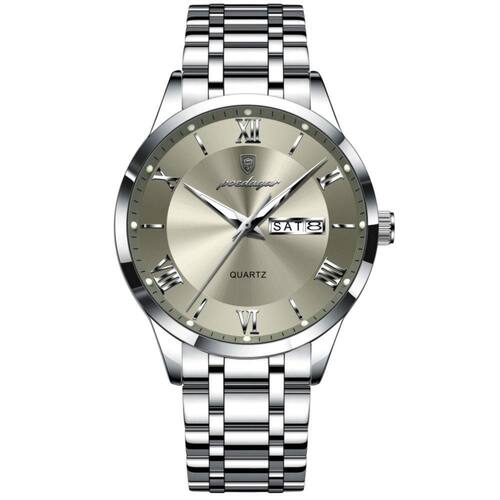 Descubra o relógio de pulso masculino que combina estilo e funcionalidade em um design incomparável. Este sofisticado acessório redefine o conceito de elegância com seu aço inoxidável de alta qualidade e mostrador com numerais romanos, projetado para aqueles que valorizam tanto o estilo quanto a precisão. Com um acabamento brilhante e resistente, este relógio é a escolha ideal para homens modernos que buscam afirmar sua presença em qualquer ocasião.