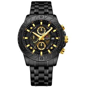Relógio Masculino Analógico Quartzo Em Aço Inoxidável Impermeavel Preto Dourado
