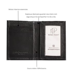 Suas linhas limpas e minimalistas emanam atemporalidade, sendo uma escolha distintiva para os amantes de estilo refinado.Complementando o conjunto, a Carteira Manchester da New Port, em couro preto premium, oferece o tamanho ideal para cartões, CNH e notas.
