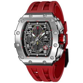 Marca TSAR BOMBA Número do modelo TB 8204SGLZHX Número da peça TB 8204SGLZHX Ano do modelo 2021 Formato do item Tonneau Tipo de material da janela de discagem Cristal de safira Tipo de exibição Analógico Fecho Fivela Material da caixa Aço inoxidável Diâmetro da caixa 5 centímetros Espessura da caixa 16,8 milímetros Material da banda Silicone Tamanho da banda Padrão masculino Largura da banda 22 milímetros Cor da banda Preto Cor do mostrador Preto Material da moldura Aço inoxidável Função do painel Exibição de 12 horas Calendário Data Recursos especiais Cronógrafo, Luminoso, Resistente a choques Movimento Quartzo japonês Profundidade resistente à água 50 metros