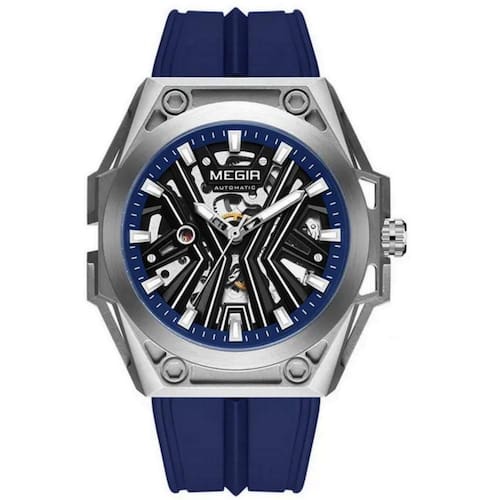 Descubra o mundo sofisticado e inovador do relógio automático, ideal para homens que buscam estilo e funcionalidade em cada detalhe. Este relógio se destaca pela sua estética militar esportiva e sua pulseira de silicone , combinando perfeitamente com qualquer look casual ou fashion. Ao olhar de perto, você notará o mostrador esqueleto, uma característica que traz um ar moderno e intrigante, permitindo uma visão fascinante do mecanismo interno.