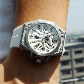 Descubra o mundo sofisticado e inovador do relógio automático, ideal para homens que buscam estilo e funcionalidade em cada detalhe. Este relógio se destaca pela sua estética militar esportiva e sua pulseira de silicone , combinando perfeitamente com qualquer look casual ou fashion. Ao olhar de perto, você notará o mostrador esqueleto, uma característica que traz um ar moderno e intrigante, permitindo uma visão fascinante do mecanismo interno.