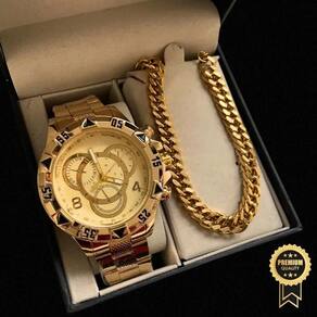 Relógio Masculino Banhado A Ouro Barato Com Pulseira
