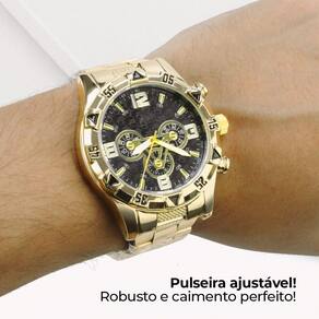 Relogio Masculino Banhado Aço + Corrente Grumet + Pulseira Social Qualidade Premium Preto Presente Relógio Masculino Prata com Detalhes Dourados Adicione um toque de sofisticação ao seu visual com este elegante relógio masculino prateado, com detalhes dourados. Feito de aço inoxidável banhado a ouro 18k, este relógio é durável e resistente à água, perfeito para uso diário, inclusive durante atividades aquáticas leves. Seu estilo elegante o torna ideal para qualquer ocasião.