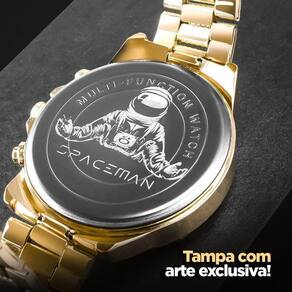 Relogio Masculino Banhado Aço + Pulseira + Cordão Crucifixo Relógio Analógico Dourado Orizom Spaceman Agora você pode ter o relógio analógico dourado da Orizom Spaceman, banhado e confeccionado em aço inox. Desfrute de um design prático que facilita a visualização das horas no dia a dia. Além disso, o relógio é resistente à água, proporcionando confiança e estilo em todas as ocasiões. Por favor, lembre-se de evitar contato excessivo com água para garantir a durabilidade do relógio. Observe que pequenas variações podem ocorrer conforme a disponibilidade em estoque.