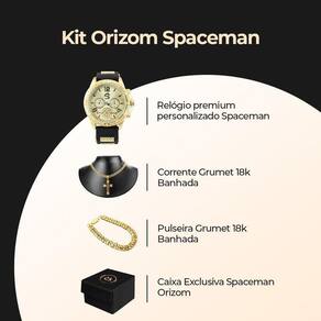 - Design Luxuoso: Caixa Dourada Premium da marca Orizom Spaceman. - Conforto e Praticidade: Pulseira de Silicone Ajustável para o usuário.