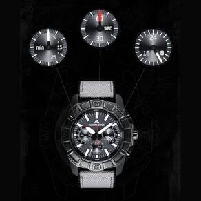 [Material e Design] Com 15,6 mm de espessura e largura de banda de 20 a 24 mm, o design robusto e arrojado é complementado por uma resistente pulseira de silicone, que garante conforto absoluto e durabilidade.