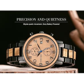 - **Manutenção**: Requer cuidados específicos para a madeira, como evitar exposição prolongada ao sol e umidade excessiva. Limpeza regular com um pano seco pode ajudar a manter a aparência e a qualidade do relógio.