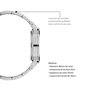 Uma interpretação contemporânea de um design atemporal, o lançamento do Relógio Scott 2.0 é a culminação de anos de artesanato meticuloso. Uma nova versão do relógio que apresenta uma pulseira de metal luxuosa, composta por elos de três peças. Cada elo é cuidadosamente trabalhado em uma forma elegantemente afunilada, assegurando uma transição suave da caixa para o fecho, proporcionando um toque de sofisticação sem igual. A pulseira é de fácil ajuste e se adapta bem a todos os pulsos. Medidas: - Diâmetro 40mm da caixa - Comprimento da Alça 22cm - Espessura da caixa 10mm - Largura da Correia de 18mm ESPECIFICAÇÕES TÉCNICAS - Visor: Analógico - Marca: New Port - Movimento: Quartzo Japonês - Caixa: Aço Inoxidável Prateado - Pulseira: Aço Inoxidável Prateada - Fecho: Fivela Simples - Face: Minimalista Preto - Mostrador: Mineral Resistente - Ponteiros: 02 - Resistente: A Respingos - Bateria: 377 Com Maior Durabilidade - Design: Minimalista Elegante - Peso: 104g - Categoria: Relógio Masculino - Acompanha: Caixa da marca New Port e Manual - Garantia: 12 meses contra defeito de fabricação Após a confirmação de compra, o código de rastreio será enviado em até um dia útil em seu e-mail. Marca: Não Informado