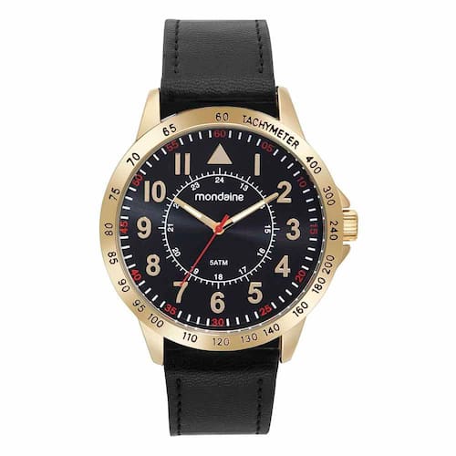 Versátil e fácil de combinar, este modelo traz um visual mais casual e elegante. Este relógio analógico possui caixa de metal dourada, visor preto, marcadores numéricos no mostrador e na catraca. A pulseira é de couro sintético que garante um melhor ajuste ao pulso, confortável para usar o dia todo. Ideal para pulsos médios. Esse relógio possui a caixa em 4,6 cm de tamanho.