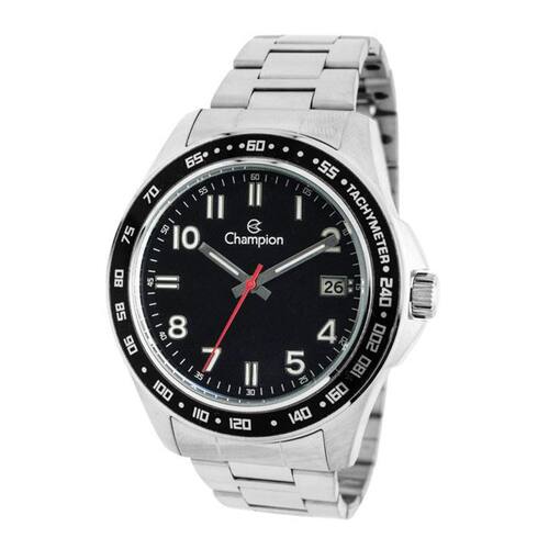 Relógio masculino champion prata em aço ca31328t fundo preto Relógio champion masculino prata com dourado ca31328t Descrição: relógio champion masculino prata e dourado Marca: champion Gênero: masculino Estilo: social/esportivo Mecanismo: quartz/analógico Alimentação: bateria Funções: hora, calendário e taquímetro Tamanho: grande Cor da caixa: prateado e preto Cor do fundo do visor: preto e dourado Cor da pulseira: prateado Material do visor: cristal mineral Material da caixa: aço inoxidável Material da pulseira: aço inoxidável Diâmetro da caixa: 45 mm Espessura da caixa: 12 mm Peso do relógio: 305 g Resistência à água: 5 atm / 50 metros 50m / 5 atm - pode lavar as mãos: sim / pode usar em água corrente: sim / pode usar na piscina: sim / pode usar em mergulho: não de 1 ano em toda rede de assistência técnica champion no brasil Ean: 7891511353562