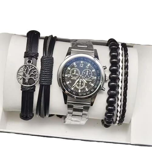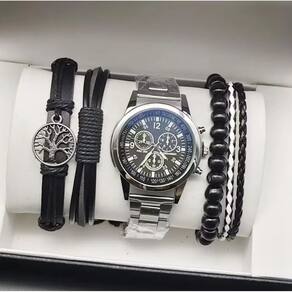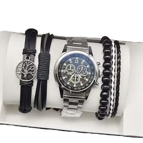 Descubra a elegância e a praticidade do nosso Kit de Relógios e acessórios! Combinando funcionalidade e estilo, o relógio garante pontualidade com um design moderno, enquanto os acessórios complementam com elegância e sofisticação. Ideal para elevar qualquer look, é a escolha perfeita para presentear ou se presentear. Material: MetalCor: CinzaComprimento do relógio: Aproximadamente 24 cmNão acompanha caixaResistente à águaNão é a prova d'água