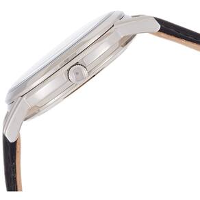 - Caixa de aço inoxidável prateado com pulseira de couro em relevo de crocodilo preto