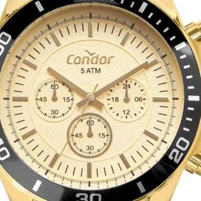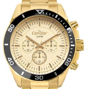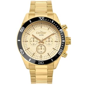 Relógio Masculino Condor ógico COVD34AB/4X Caixa: Aço Dourado Pulseira: Aço Dourado Mostrador: Dourado Função: Cronógrafo Resistência: 5 ATM Visor em Cristal Mineral Movimento Quartz Tamanho da Caixa: 48 mm Espessura da Caixa: 12 mm Tamanho da Pulseira: 22 cm Fecho dobrável Acompanha caixa e manual eletronica Gar. De 12 meses pelo fabricante Marca: Não Informado