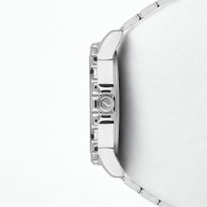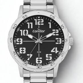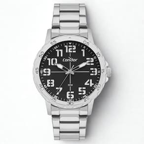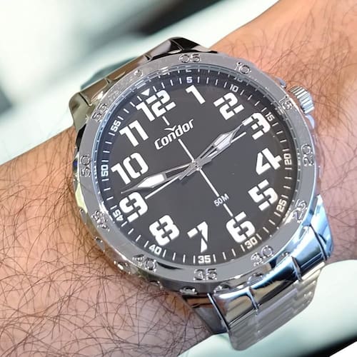 Descubra a força do lançamento de militar. Relógio de aro com marcação de minutos e mostrador com numeração completa, com pulseira em 3 links e banho prateado e mostrador na cor preta.