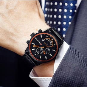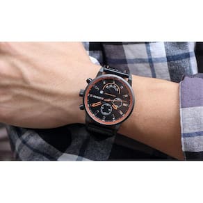 Marca: Curren Categoria: Analógico Analógico: Sim 1 Horário Ponteiros Fluorescentes: Não Mostra o Dia da Semana: Não Mostra o Dia do Mês: Sim Cronômetro: Não Resistente à Água: 3 ATM - Respingos: Sim - Chuva: Sim - Natação: Não - Mergulho: Não Característica do Vidro: Mineral Hardlex Tipo de Fecho: Fivela Simples Material da Caixa: Aço Inox Formato da Caixa: Redondo Diâmetro da Caixa: 4,8 cm Espessura da Caixa: 1,2 cm Material da Pulseira: Couro Largura da Pulseira: 2,2 cm Comprimento Máximo da Pulseira: 23 cm Alimentação: Bateria Interna Peso Líquido: 0,058 Kg Modelo: 8217 Garantia: 3 meses
