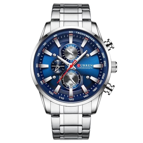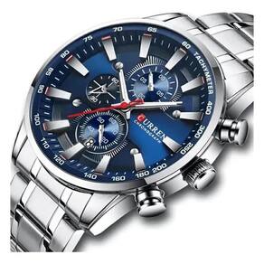 O Relógio Curren 8351 apresenta estrutura metálica e mostrador analógico com cronógrafo funcional. Um modelo que combina visual moderno e praticidade, adequado para uso diário ou ocasiões casuais.
