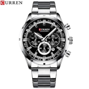 Marca: curren Estilo: casual Gênero: masculino Modelo: 8355 Movimento: analógico Cronógrafo: funcional Botão lateral: funcional Ponteiros: luminosos Bateria: sim Cor da pulseira: prata Cor da caixa visor : prata Cor do mostrador: preto Formato da caixa visor : redondo Material da pulseira: aço inoxidável Material da caixa visor : aço inoxidável Material do vidro: cristal mineral Tipo de fecho: fecho + trava Garantia: 03 meses