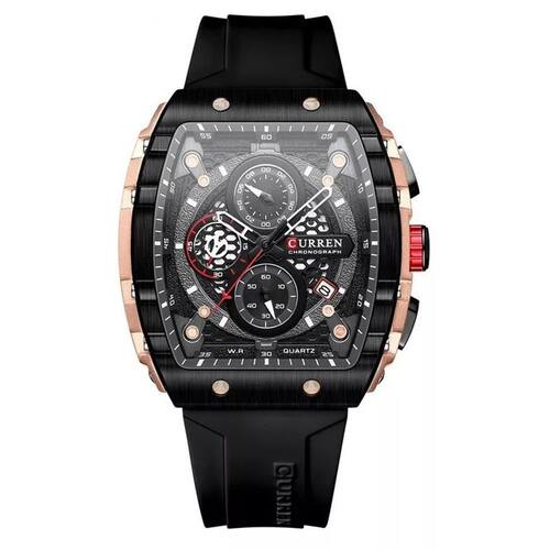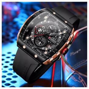 Relógio masculino com design esportivo e estrutura resistente. Modelo analógico com movimento de quartzo e cronógrafo funcional. Possui exibição de data automática, ponteiros luminosos e mostrador amplo. Construído com caixa em liga metálica e pulseira de silicone, proporciona conforto e durabilidade no uso diário. Resistente à água até 3 ATM, adequado para respingos e chuva leve.