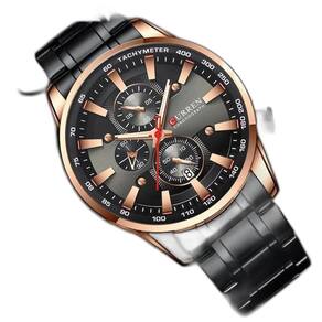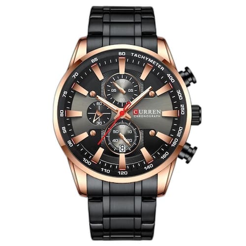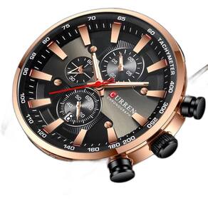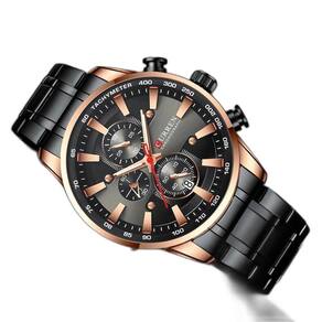 - Tipo De Item: Relógio De Pulso - Marca: Curren - Estilo Do Relógio: Fashion, Moderno, Casual - Gênero: Masculino - Dial Display: Analógico - Movimento: Quartz - Modelo: 8351 e 8363 - Resistência a Água: 3 ATM pelo fabricante não nadar, mergulhar e banho quente . - Característica: Resistente a Água e Choques - Funções: Data e Cronógrafo Funcional - Formato Do Mostrador: Redondo - Diâmetro Do Mostrador: 4,8 cm - Material Do Mostrador: Vidro Hardlex - Espessura Da Caixa: 1,4 cm - Material Da Caixa: Liga Metálica De Alta Qualidade - Cores: Azul/ Rosê, Prata/Azul, Preto/Azul, Branco/Prata, Preto/Rosê. - Tipo De Fecho: Fecho Dobrável Com Trava - Material Da Pulseira: Aço Inoxidável - Cor Da Pulseira: Preto/Dourado - Largura da Pulseira: 2,4 cm - Comprimento Total: 24 cm - Acompanha Caixa Box Ean: 0736568418901