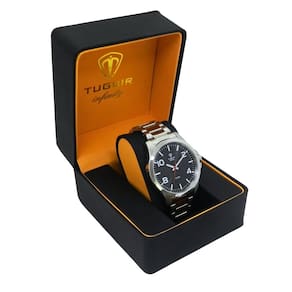 Relógio Masculino de Aço Tuguir Analógico Infinity 6117G Prata e PretoMarca: Tuguir Categoria: Analógico Analógico: Sim (1 Horário) Ponteiros Fluorescentes: Selecione Digital: Não Luz: SelecioneResistente à Água: 5 ATM (Pode ser utilizado para nadar no raso, por pouco tempo submerso) - Respingos: Sim - Chuva: Sim - Lavar Carro: Sim - Lavar Louça: Sim - Natação: Sim - Mergulho: Não Característica do Vidro: Cristal Mineral Tipo de Fecho: Dobrável com Botão Cor da Caixa: Prata Material da Caixa: Aço Formato da Caixa: Redondo Diâmetro da Caixa: 45,00 (mm) Espessura da Caixa: 10,00 (mm) Cor da Pulseira: Prata Material da Pulseira: Aço Largura da Pulseira: 20,50 (mm) Comprimento Máximo da Pulseira: 280,00 (mm) Alimentação: Bateria Interna Peso Líquido: 0,130 Kg Modelo: Infinity 6117G Cor Predominante: Prata Cor Diferencial: Preto Garantia: 12 MesesConteúdo da Embalagem: 01 Relógio 01 Embalagem 01 Termo de Garantia