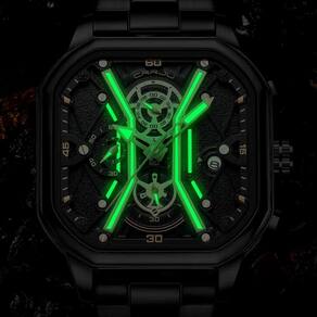 Elegância e funcionalidade se unem no relógio Com um design moderno e arrojado, seu formato quadrado confere um toque único e sofisticado ao visual. Feito de aço inoxidável de alta qualidade, este relógio é resistente e durável, perfeito para o uso diário. A impermeabilidade garante que você possa usá-lo em diversas situações sem se preocupar. Além disso, o mostrador luminoso permite a leitura das horas mesmo em ambientes com pouca luz, combinando praticidade e estilo em um acessório indispensável para o homem moderno.