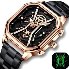 Elegância e funcionalidade se unem no relógio Com um design moderno e arrojado, seu formato quadrado confere um toque único e sofisticado ao visual. Feito de aço inoxidável de alta qualidade, este relógio é resistente e durável, perfeito para o uso diário. A impermeabilidade garante que você possa usá-lo em diversas situações sem se preocupar. Além disso, o mostrador luminoso permite a leitura das horas mesmo em ambientes com pouca luz, combinando praticidade e estilo em um acessório indispensável para o homem moderno."