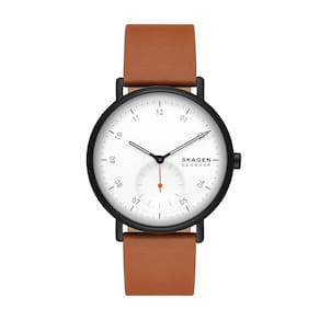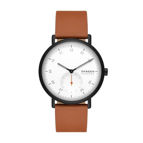 Skagen Relógio masculino Kuppel de dois ponteiros com pulseira de couro ou malha de aço inoxidável, Preto/Marrom, Kuppel