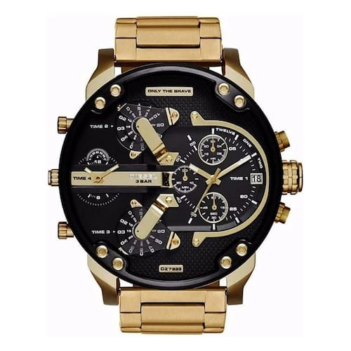Características Composição do Vidro: Cristal Mineral flame fusion resistente a riscos. Material da Caixa: Aço inox Cor da Caixa:Dourado Material da Pulseira: Aço Inox Cor da Pulseira: Dourado