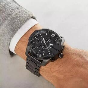 Características Composição do Vidro: Cristal Mineral flame fusion resistente a riscos. Material da Caixa: Aço inox Cor da Caixa: Preto Material da Pulseira:Aço Inox Cor da Pulseira: Preto Medidas Largura da Caixa: 50 mm Espessura da Caixa: 14 mm Resistência à Água Pressão: 120 ATM Resistência a Respingos: Sim Resistência à Água Corrente: Sim Resistência a Mergulho em Piscina: Sim