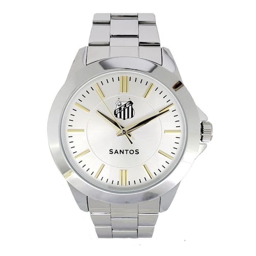 Relógio do Santos Casual Aço Masculino SAN-004-3 Relógio Santos Futebol Clube Masculino Produto Oficial Mecanismo analógico Pulseira de aço, fecho de aço e fundo de aço Máquina Japonesa Citizen A prova d'água 50m Este relógio é ideal para você torcedor do Santos que procura um produto de qualidade para fazer suas atividades esportivas, academia, praia, piscina e qualquer outra ocasião Ele possui caixa tamaho 45mm, oque é um tamanho excelente para todas as idades Um ano de e assistência técnica em todo o Brasil Produto Oficial Licenciado Santos Futebol Clube Marca: Não Informado