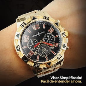 O destaque deste kit é o Relógio Analógico Masculino Orizom Modelo Spaceman, de qualidade Ultra Premium. Com maquinário feito todo em aço inoxidável e acabamento dourado banhado, este relógio é ideal para uso diário ou em ocasiões especiais. Além disso, o mostrador preto com números de fácil leitura e a tampa blindada com detalhes de autenticidade garantem um visual sofisticado e elegante.